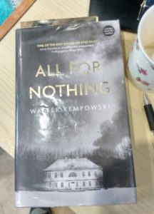 November is German Literature Month so I am about to make a start on reading All for Nothing – Alles Somst, which is this month’s title for the war and lit readalong. It’s described as Walter Kempowski’s crowning achievement and to judge from the opening chapter it is going to be a dark and compelling read.