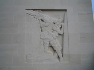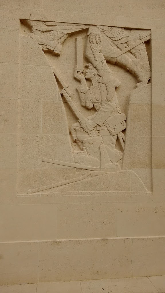 The memorial itself was designed by the architect Harold Chalton Bradshaw, to remember the 7,048 men who were missing after the Battle of Cambrai. Jagger worked on the two stone reliefs during 1926-1928 and the memorial was unveiled on 4th August 1930 (the same day as the unveiling of the memorials at Loos, Pozieres, and Vis-en-Artois).