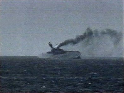 ” Glancing idly round the convoy, I noticed that the Eagle was making rather a lot of smoke and was about to add a caustic comment when it seemed to me that she was taking a list to port. And so she was. While we watched she gradually heeled over until her flight deck was awash and then she paused before finally subsiding beneath the sea 4 mins 17 secs after she was hit. ….